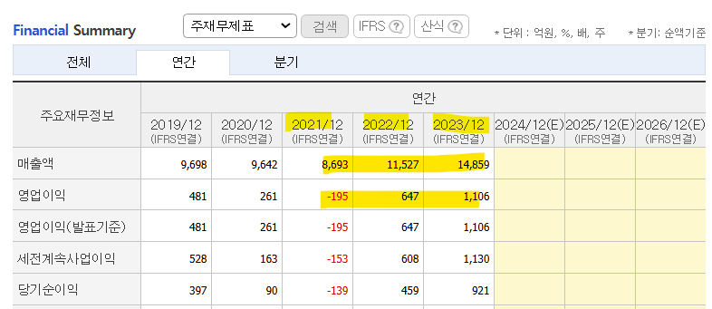 최근 3년간 매출액 및 영업이익은 큰 폭의 상승세를 보이고 있습니다. 24~26년 실적 컨센서스는 아직 잡히지 않았으나 사업 역량을 고려할 때 지속적인 성장성을 예상해 볼 수 있습니다.