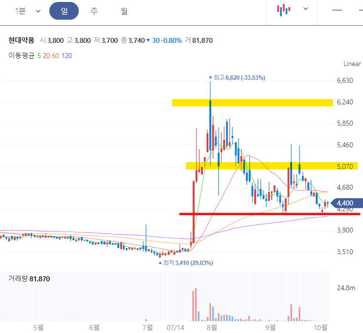 동사의 주가는 낙태 관련 의약품 승인 여부와 같은 주요 이슈에 따라 영향을 받을 것으로 예상됩니다. 만약 미프지미소가 성공적으로 승인된다면, 이는 현대약품에 긍정적인 모멘텀을 제공할 가능성이 큽니다. 그러나 신약의 승인 과정에서 불확실성이 존재하며, 특히 국내외 경쟁 상황과 규제 요인도 주가에 영향을 미칠 수 있습니다.