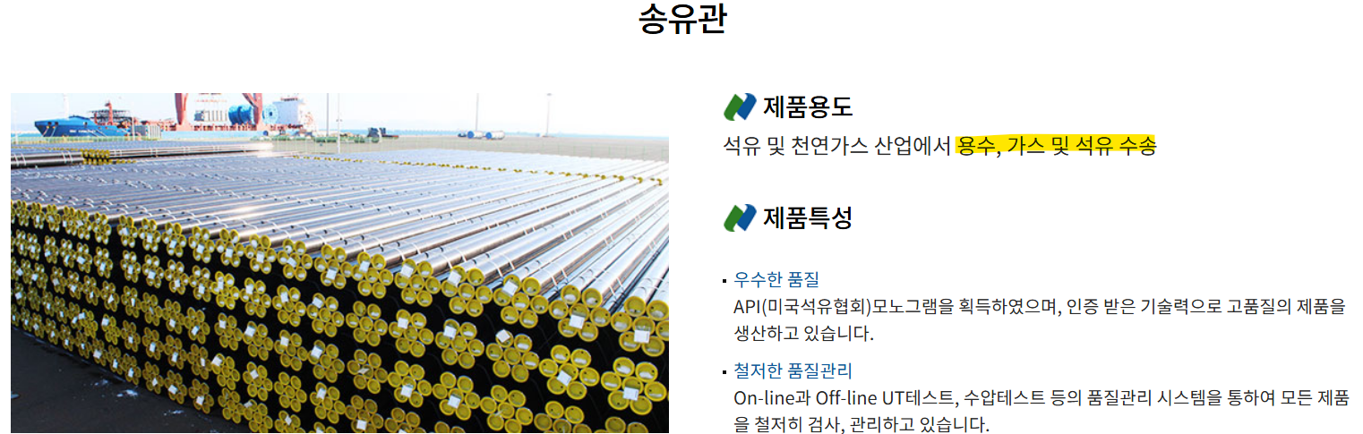 쉽게 말해 넥스틸의 주요 사업은 석유 자원을 채취할 때 사용되는 강관과 채취한 석유를 다른 곳으로 보내기 위하여 필요한 강관을 만드는 기업임을 알 수 있습니다.