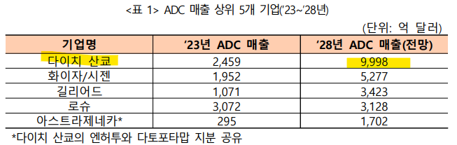 ADC 전체 시장은 300억 달러에 이를 것으로 추산하며, 현재 미국에서 12개 이상의 ADC가 승인되었으며 시장점유율이 가장 높은 ADC Enthertu(엔허투) (다이치 산쿄, 아스트라제네카)는 28년 100억 달러의 매출을 올릴 것으로 추정하고 있다고 합니다.