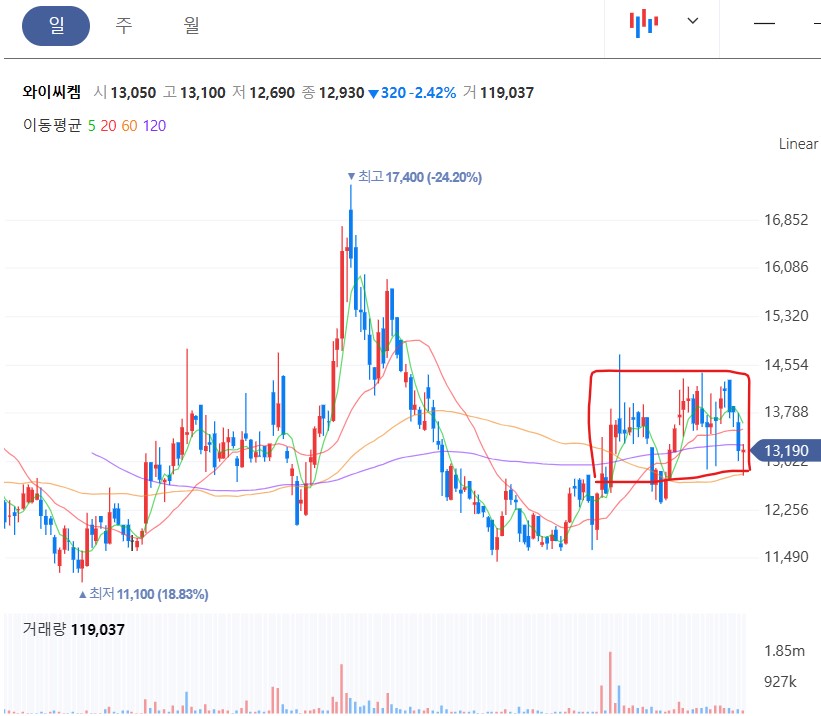 시장은 에코프로를 필두로 하는 2차 전지와 한미반도체가 대장인 반도체주가 양대 축으로 움직이고 있다. 대장주들의 단점은 차트는 좋다. 하지만 가격이 높아 적당한 가격조정과 기간조정을 받아야 한다는 점이다. 금일 에코프로가 20일선까지 조정을 주었다가 반등에 성공을 했다. 전고점까지 치고 가는 데는 무리가 있어 보인다. 최근 임원들의 대량매도 및 빚투 개미들의 매수가 말해준다. 단타로만 대응이 가능해 보이는 영역이다. 포스코 그룹주도 마찬가지다. 하지만 지지권 저점 매수 시 단타 수익률은 꽤 큰 쪽이다. 강한 주도주 열기가 아직도 식지 않았기 때문이다. 한미 반도체 및 주성엔지니어링, 원익 IPS, 동진쎄미켐, 하나마이크론, 이오테크닉스 등의 대장주급 반도체 종목들은 에코프로, 포스코 보다는 상승률이 적었기 때문에 더 상승할 여력이 있지 않알까 한다. 금일 이오테크닉스는 11% 급등. 주성엔지니어링은 5% 상승 마감했다. 강한 종목들은 5일선, 10일선 지지권에서 바로 치고 가는 경향을 보이며, 최소 20일선까지 조정을 준 종목들도 20일선에서 지지 매수 시 빠른 수익이 가능할 것으로 보인다. 원익 IPS는 20일선 조정을 잘 마무리한 케이스다. 오픈엣지테크놀로지 같이 60일선까지 빠진 종목들은 저점 매수하고 조금 기다려야 한다. 추세는 우상향이다. 시세를 제대로 분출하지 못하고 있는 중소형 반도체주 중 엠케이전자, 와이씨켐 역시 60일선 지지 중이다. 초보들은 60일선 지지 패턴을 매수하는 것이 더 안정적이다.