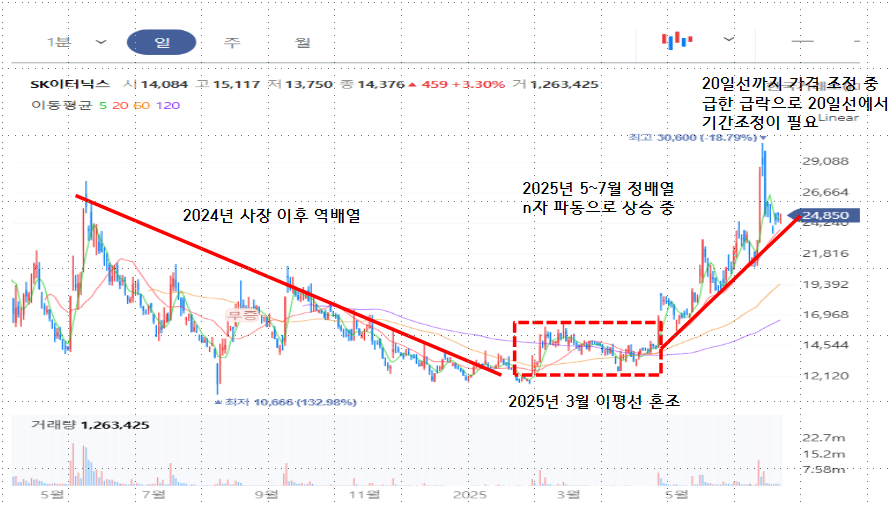 20일선 가격조정을 받고 있는 연료 전지 관련주 sk이터닉스의 주가 분석 브리핑 시작합니다.