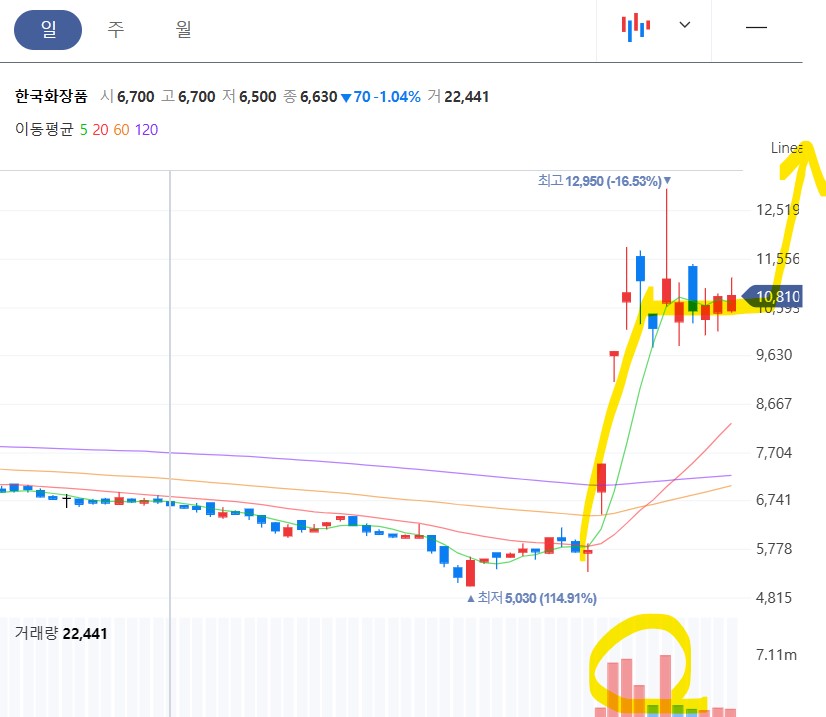 중국이 관광여행을 재개한다는 뉴스에 가장 크게 급등 한 종목인 한국 화장품이 대장주일 확률이 크다. 현재 2배 급등 후 숨 고르기 진행되는 가운데 주말 유커 관련 뉴스가 많이 올라왔다. 중국 관광객은 4분기 더욱 증가될 것으로 보이며, 대장주의 눌림목 공략은 단기 진입으로 좋아 보인다.