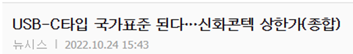 9월 14일 애플 아이폰 15프로 발표가 있다. USB-C로 모든 기기 충전이 가능하다는 뉴스가 나왔는데 과거 대장주 신화콘텍을 눈여겨볼 만한다. 신화콘텍은 2022년 10월 24일 이 뉴스로 상한가를 간 적이 있다.