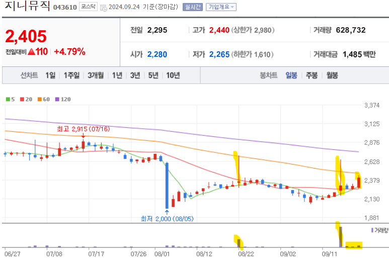 지니뮤직 기술적 분석