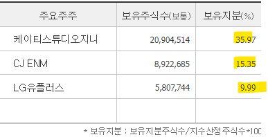 지니뮤직은 KT그룹 산하의 대표적인 음원 스트리밍 플랫폼으로, 1991년에 설립되었고 2000년 코스닥에 상장되었습니다. 동사는 국내 최초로 AI 기반 음악 큐레이션 기술을 도입하여 사용자 맞춤형 음악 추천 서비스를 제공하고 있으며, 고음질 음원 및 공연 사업 등으로 사업을 확장하고 있습니다. 특히, 자회사인 밀리의 서재와의 시너지를 통해 디지털 앨범 및 버추얼 아티스트 사업으로도 성장하고 있습니다. 주주 현황은 아래와 같이 빵빵합니다.