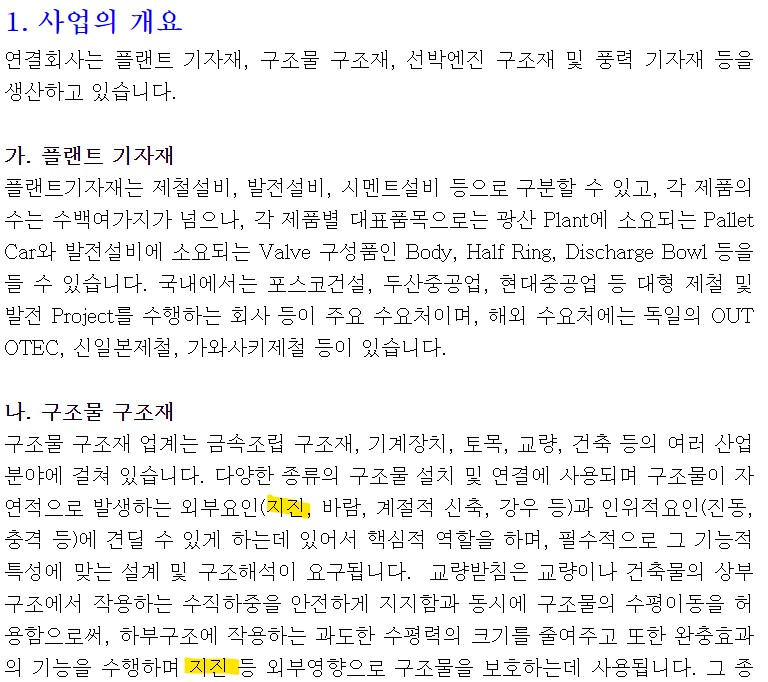 3500원 바닥권에서 이중바닥을 만들고 1차 상승을 한 후 현재 120선까지 돌파 후 횡보 조정 국면 이었습니다. 오늘 지진 뉴스가 있으니 시초부터 급등 출발이 예상되네요! 지진 관련 외에 동사는 플랜트 기자재, 구조물 구조재, 선박엔진 구조재 및 풍력 기자재 등을 생산하고 있는 기업으로 관련 산업이 회복세에 있어 성장이 예상됩니다.