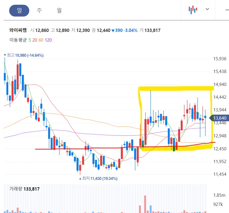 차트가 살아 있는 종목 와이씨켐 외