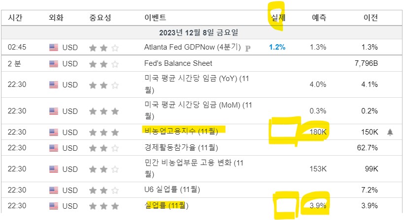 고용동향 보고서에서 시장에 영향을 크게 미치는 것은 11월 비농업고용지수와 실업률입니다. 비농업고용지표는 예측하고 있는 180K 보다 낮게 나오고, 실업률도 예측치인 3.9% 보다 높게 나온다면 시장은 재차 상승하겠쥬?반면, 비농업공업지수가 180k보다 높게 나오고(200k만 안넘으면 안도), 실업률이 낮게 나온다면 하락 조정은 좀 더 이어질 순 이겠지만 여하튼 지수는 계속 상방 쪽으로 트라이할 것으로 보입니다. 근거는 환율이 1320원을 넘어하기 어렵고 외국인들의 수급 중 선물을 어느 정도 매수한 상태라서 하방에 대한 압력은 약해진 상태입니다. 그리도 다음 주 CPI 발표와 (12/12) FOMC (12/14)가 예정되어 있어 또 다른 변곡점이 기다리고 있습니다. 금일 새벽 나스닥의 반등은 고용지표의 긍정해석으로 보이며, 금일 국내 증시도 선반영 되어 상승을 예상합니다. (결과는 오늘 저녁 22시 30분에 확인!)