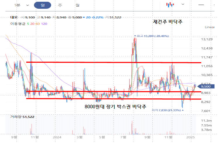아직 시세가 분출되지 않아 바닥권에서 천천히 매수 가능한 종목들입니다.