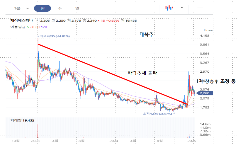 이밖에 차트 트럼프 취임 이후 정책 이슈로 부각될 수 있는 관세 전쟁 희토류주(삼화전자)와 우러 전쟁 종전 재건주(대모) 그리고 김정은 만남을 추진 대북주(제이에스티나)를 선 취매 후 기다리는 전략을 꾀한다면 2~3월에 좋은 결과를 예상해 볼 수 있겠습니다.