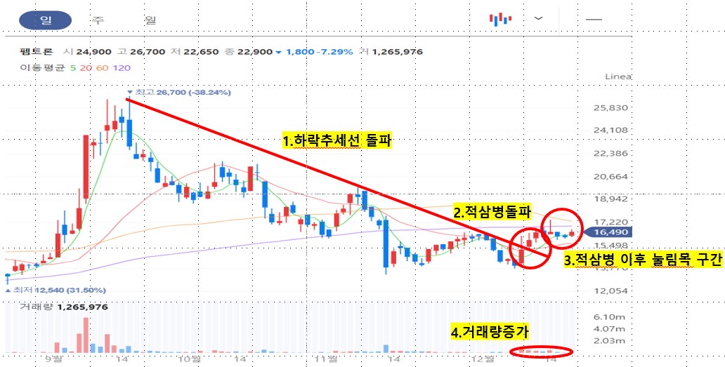 연말, 연초 장 특징으로 바닥권에서 추세를 돌파하는 적삼병 주식을 주목해야 하는 까닭에 대해 얼마 전 브리핑 한 바 있었습니다. 소개드렸던 종목 중에 파멥신이 결국 상한가를 갔는데요 양봉이 크고 강한 적삼병일수록 상승 힘이 좋다는 것을 알 수 있었습니다. 파멥신 같이 양봉이 크고 힘이 좋은 고영 외 적삼병이 나온 종목 5가지를 소개해드리겠습니다.