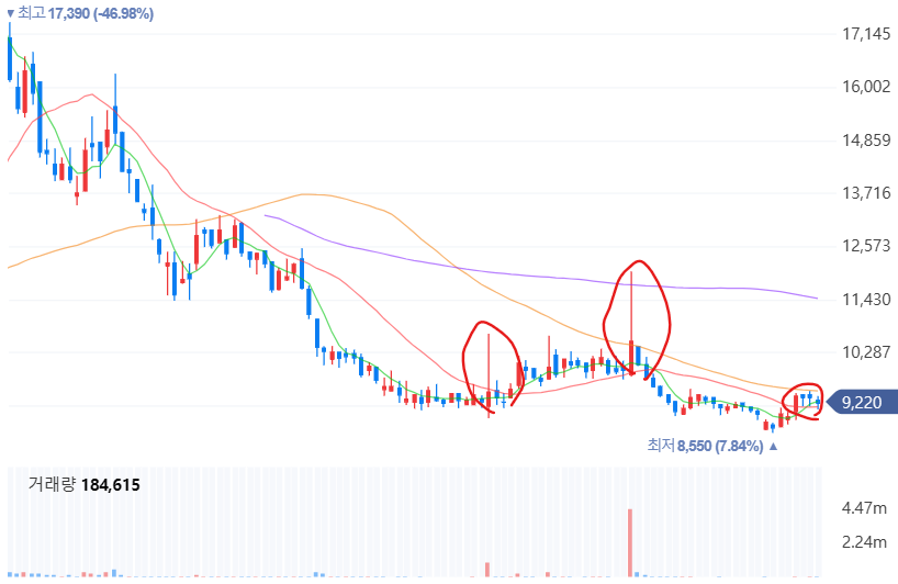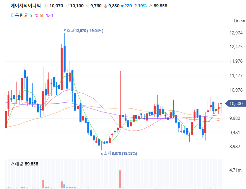둘째, 현 주가 너무 바닥이다. 올 초 8,630원이었던 주가는 챗봇의 열풍으로 2월 1일 19,650원 찍었다. 2배 이상 폭등이다. 하지만, 그 이후 약 6개월 동안 가격조정과 기간조정을 보이며 어제 기준 9,220원에 머물러 있다. 가격 메리트 이 정도면 충분? 무조건 가격이 많이 빠졌다고 매수한다면 당신은 초보. 바닥을 알리는 시그널이 나왔다. 우선, 5월 15일 20일 이평선이 의 각이 우상향 초입 구간에서 거래량 증가 긴 윗꼬리 양봉이 한번 나와줬고, 그 이후 6월 14일 이번에는 60일 이평선을 돌파하는 강력한 급등 윗꼬리 양봉이 나왔다. 강력한 똥침이다. 바닥권에서 나오는 이 윗꼬리 양봉의 똥침을 좋아한다. 매집의 시그널로 보이기 때문이다. 저 똥침이 많을수록 좋다. 최근에 급등한 티에프이도 저 똥침이 나온 뒤 100% 상승했고, 어제 새빗켐도 장중 급등 윗꼬리 똥침을 보여줬다. 현재 똥침 급등 전조 현상을 보이고 있는 에이치와이티씨도 잘 봐야 한다. 언제 쏠지 모른다. 그리고 이노룰스는 최근 최바닥에서 거래량 증가 장대양봉 뒤 도찌형의 3 음봉 조정을 보여줬다. 저점을 높이고 있고 작은 상승 추세를 만들고 있다. 장대 양봉의 기준양봉을 지지삼아 3음봉 조정은 곧 추가 상승을 의미한다. 또한 20일 60일선 이격은 붙어 있고 60일선과 120일선 이격이 크게 떨어져 있다. 이격이 클수록 붙어야 하기 때문에 단기 최소 11,200~12,000원까지 돌파 시도는 나올 것으로 보인다. 이노룰스를 주목해 보자! 에이치와이티씨도.